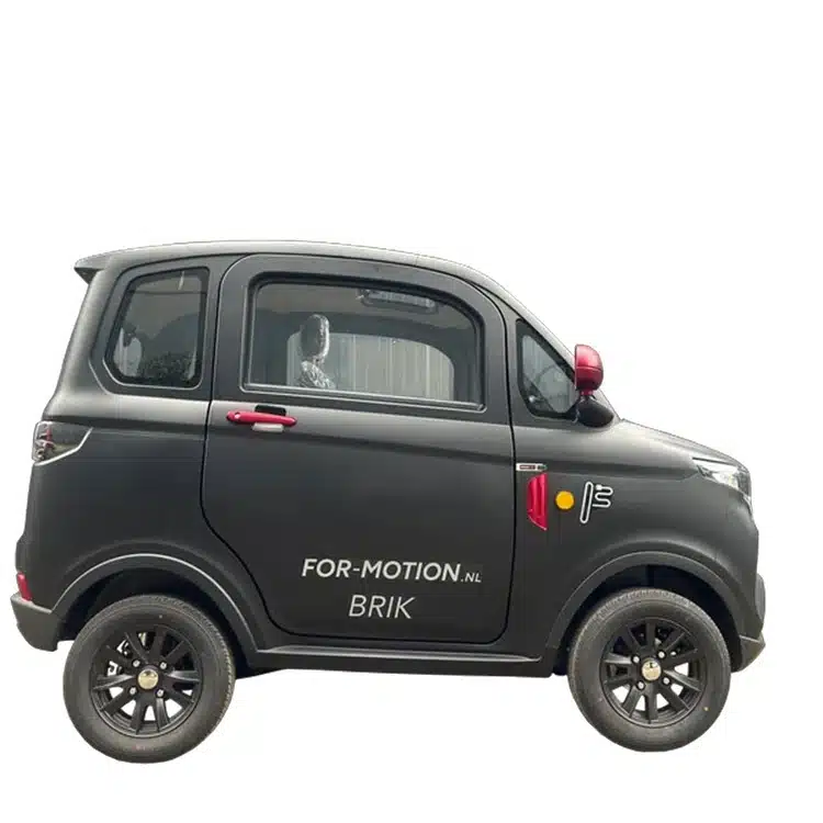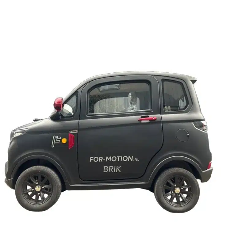 De For Motion Brik biedt verrassend veel ruimte voor een microcar. De achterbank biedt plaats aan twee passagiers, zodat je comfortabel met drie personen kunt rijden. De gordels voorin en achterin zorgen ervoor dat iedereen veilig is, en de ruime zitruimte maakt langere ritten ook aangenaam.