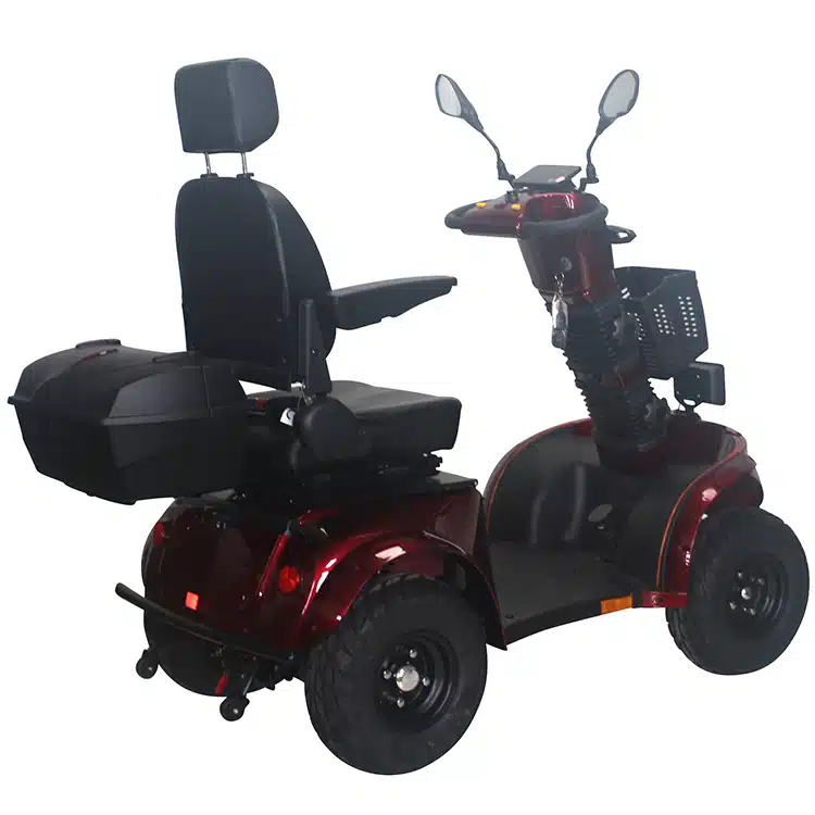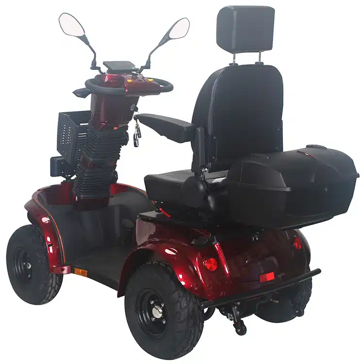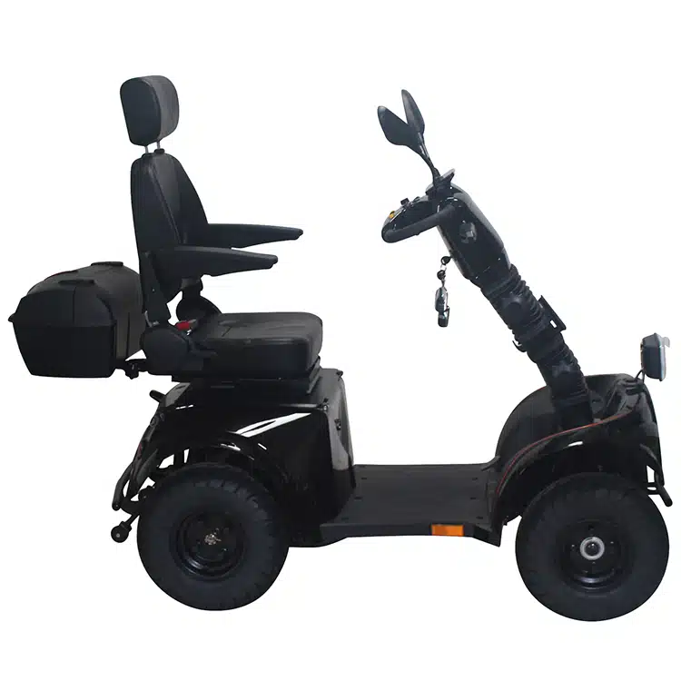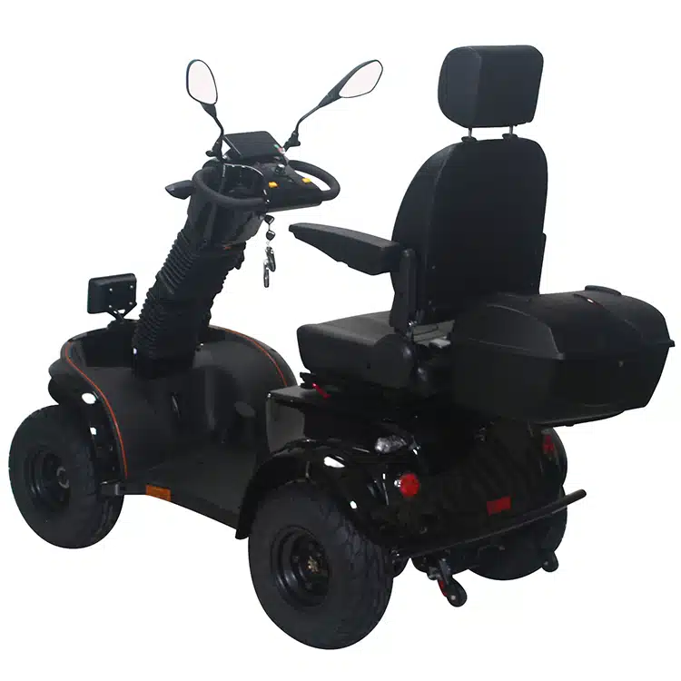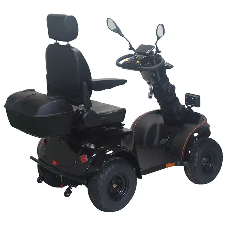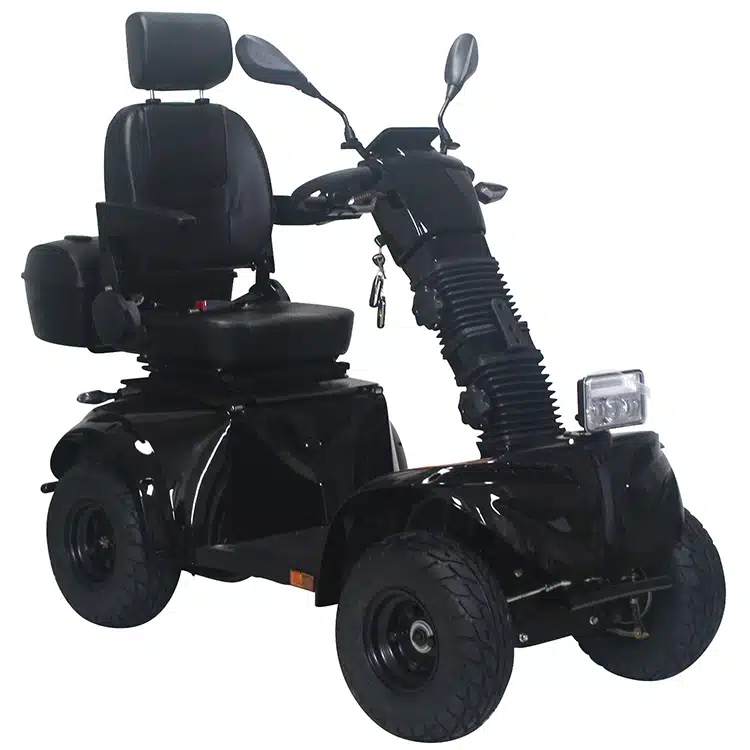 Het stijlvolle design met sportieve metalen velgen en een dynamische lijnvoering maakt de Forto een echte blikvanger — krachtig, modern en onderscheidend van elke traditionele scootmobiel.