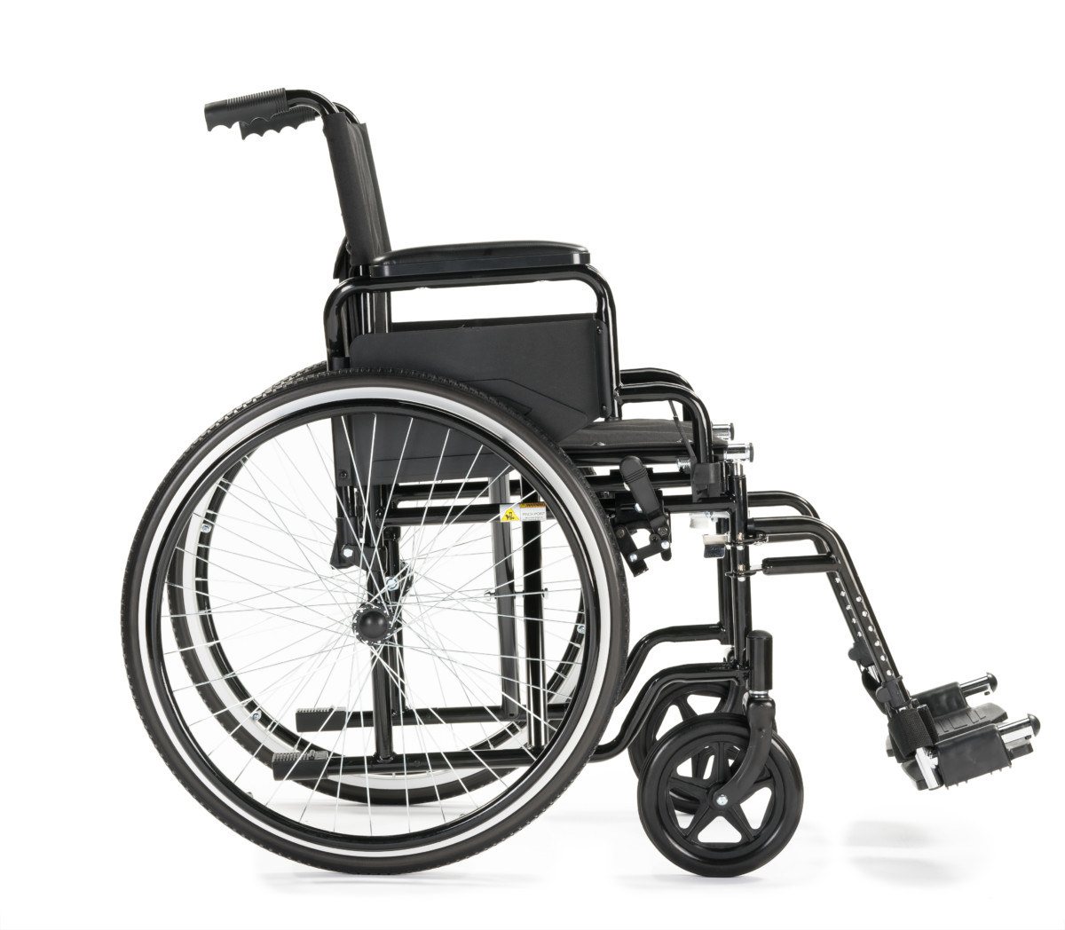 Stevige en lichte rolstoel met basisfunctionaliteit voor dagelijks gebruik.